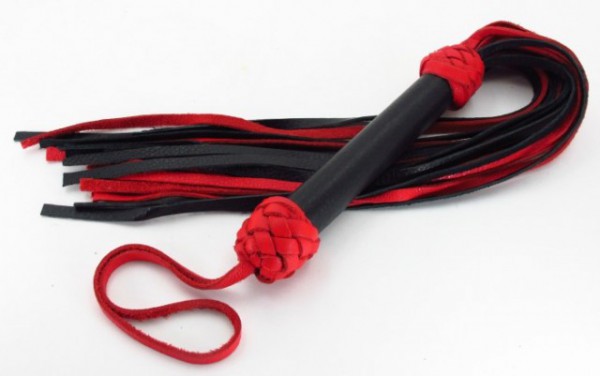 Плеть-​многохвостка черно-красная "BDSM-​Арсенал" с плетеной рукоятью, кожа