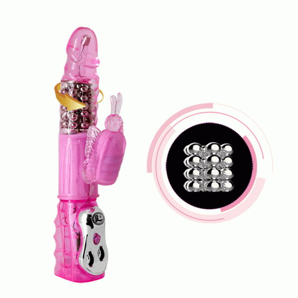Вибратор-ротатор "Deluxe" классический хай-тек в нежно розовом цвете. Ярко выраженная головка, складки, имитирующие крайнюю плоть, блок металлических шаров и клиторальный зайка обещают неземные ласки клитора и лона одновременно!